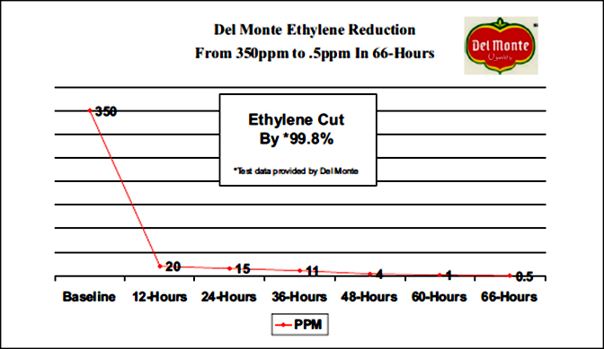 Thử nghiệm được tiến hành tại Del Monte Fresh để đo lường tác động của Airocide trong việc giảm khí Ethylene và nấm mốc/nấm trong không khí