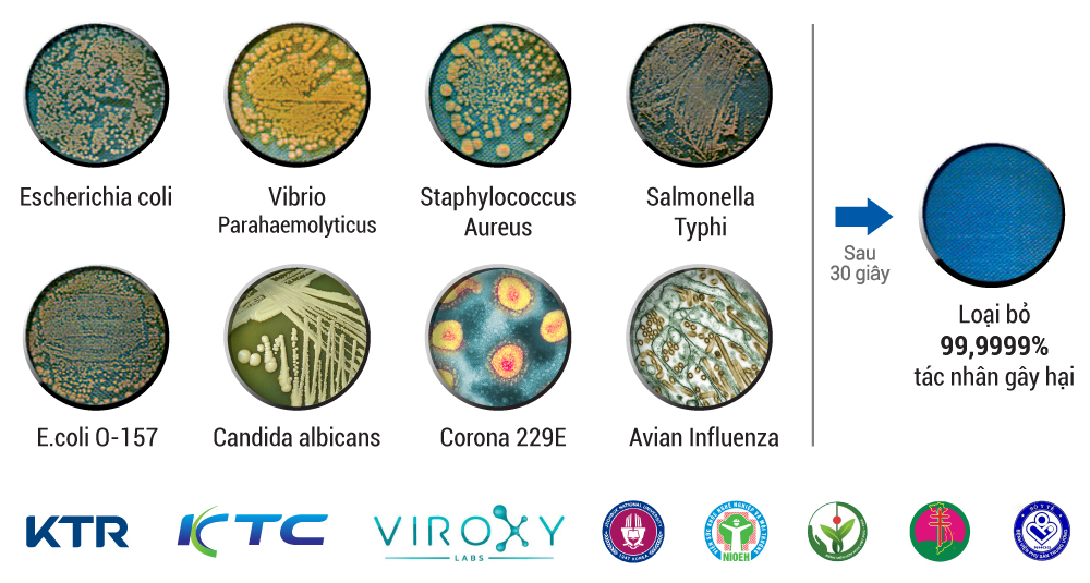 - Loại bỏ hiệu quả các loại vi khuẩn, nấm, mầm bệnh trên bề mặt thực phẩm, nông sản.